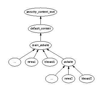 This mechanism allows developers and administrators to define a hierarchy that matches the structure they need for access control in their application. The following picture shows a typical context hierarchy for a hypothetical site:
