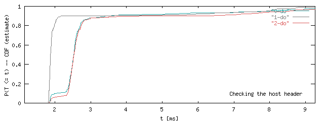 We have graphs for 9 stages only. While Tcl pages generate four more entries, these lack from templated pages, and hence I suppressed them. The log message that marks the beginning of each phase is written in the lower right of the graphs. Each curve curve plots 288 page requests. As I didn't back port of the configurable cache refreshing stragegy ('never' or 'always'), I show all graphs in the 'normal' colors. The label is 'do', though.